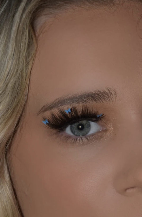 Get the full Butterfly Effect. These wispy lashes come with 3 blue butterfly decals.